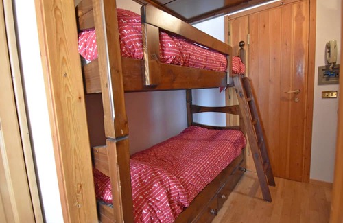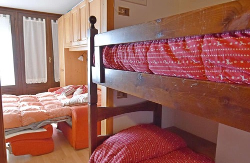 The apartment has a bunk bed in the entrance, a sitting room with a double sofa bed, a kitchenette, and a small balcony, it is 30 m². The property is located at the foot of the ski slope. It has views of the mountain.