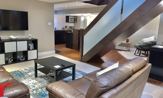The guest suite located on the lower level of our home has a comfortable, open-concept living space to welcome you and provide an enjoyable and relaxing "Home-Away-from-Home" stay.