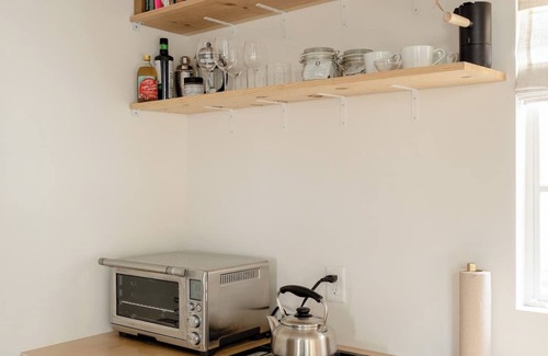 Perfect for a couple traveling to LA to visit friends, a young family, pet lovers, grandparents visiting their cool adult children, and a remote worker who just wants a change of scene. This intimate and modern 600 SF guest suite features views of the Silver Lake Reservoir and the San Bernardino Mountains. Located in the heart of the Silver Lake neighborhood of Los Angeles, this recently remodeled 1 bedroom 1 bath space includes a living room, kitchenette, and outdoor seating.