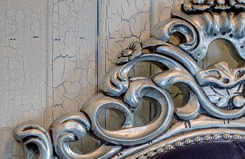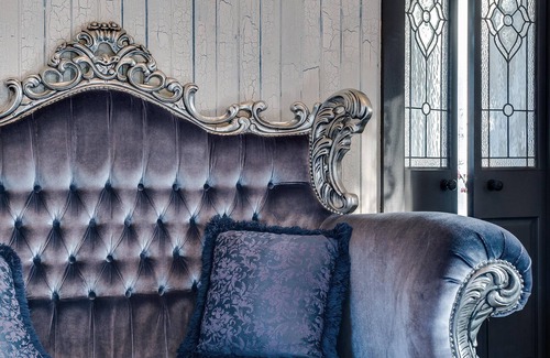 Enjoy the ambience of stunning silvered and velvet Rococo furniture, french cafe table setting, antiqued walls and kitchenette.