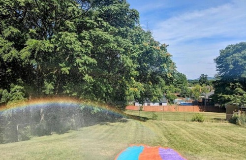 The backyard is large and perfect for children and animals; we do not use RoundUp, pesticides, or insecticides as we enjoy pollinators visiting.