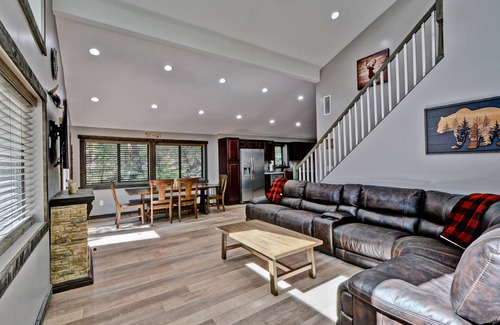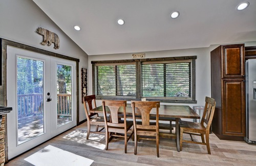 Sitting among massive pine trees, our cabin is spacious with 3 bedrooms (comfortably sleeps 8 people) and 2 bathrooms, a large leather couch, huge flat screen TV with high speed internet and WIFI, Netflix, cable TV, and even Nintendo for the kids. The entire cabin was custom redesigned with an elegant kitchen, stainless steel appliances, Keurig Coffee maker, plenty of cookware and a large family table to enjoy meals. Our massive custom windows throughout the cabin give you the feeling like your sitting in the forest. The bedrooms are comfortable with plush bedding, along with real air conditioning and central heat for those cold nights.
