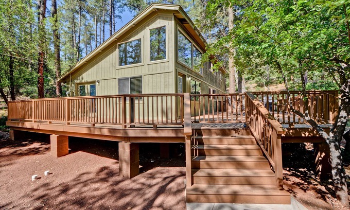 Welcome to Pine's most beautiful cabin with the largest deck in town - all fully remodeled. Our cabin is one of the very few cabins in Pine/Strawbery that backs up to the national forest. Surrounded by an abundance of large pine trees and breadth taking views, our cabin is perfect for large or small groups. With a massive deck that has over 900 sq ft and looks into the national forest, and modern amenities like high speed internet, it's an amazing place to spend time with friends and family.