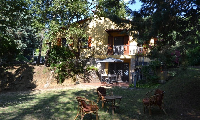 Immersed in the green hills of Umbria, 700 meters above sea level, in an ideal setting for excursions in the surrounding area (Lake Trasimeno, Perugia, Assisi, Cortona, Siena, ...) and walks in the woods, the house for exclusive use completely at guests' disposal, it is located right in front of the enchanting ancient village of Preggio, known for its history and for its numerous cultural and gastronomic events (Preggio music festival, Preggio in time, The chestnut festival).