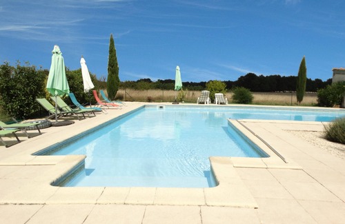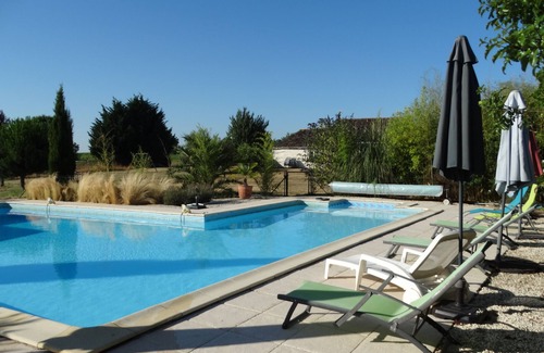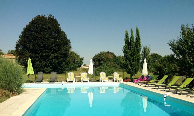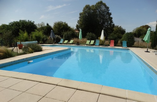 Patio doors open onto 2.5 acre grounds with a great view of the pool. You can enjoy your own private BBQ. The pool is a stunning L-shaped swimming pool shared with just one other gite. It is a summer pool.