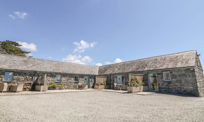 A ground floor barn conversion in the North Wales village of Tal-y-Bont that can sleep four people in two bedrooms.