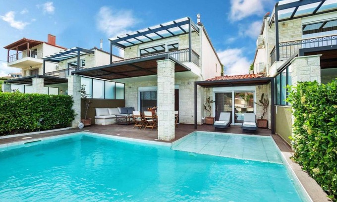 This 3 Bedrooms Villa is suitable for tourists and travelers. It has several amenities that would guarantee your comfort. These amenities include: Parking, Pool, Child Friendly, and several others. This is a good star rated property . Coming to Hanioti and needing a place to stay? Be it for work or for leisure, consider staying at this Villa for your next visit, you will surely love it.