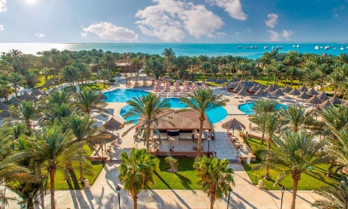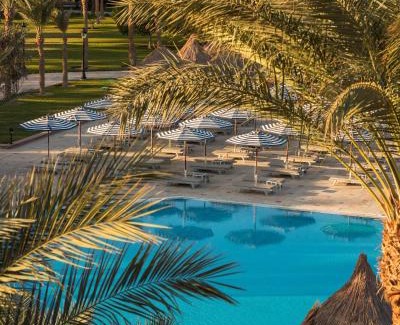 This all-inclusive beachfront resort in Hurghada features an impressive freeform pool surrounded by manicured gardens. Its private sandy beach with loungers and umbrellas slopes gently into the clear Red Sea. All accommodations is air conditioned and fitted with a balcony or French window opening onto a private terrace with garden or sea views. Each is decorated with canopied beds and custom-made curtains. Room service is available. Guests can play a variety of sports, such as table tennis, volleyball and aerobics. The on-site water sports center offers snorkeling and other activities. Guest can soak up the sun on the sun terrace around Siva’s pool, or relax on loungers at the beach. Beach towels and bags are provided in the room on arrival. The swimming pool is not wheelchair accessible The Siva Grand Beach offers 7 bars, including a pub and a poolside and beachfront bar. It also features 3 buffet-style restaurants. Siva Grand Beach is a 15-minute drive from downtown Hurghada. Hurghada International Airport is only 2.5 mi away.