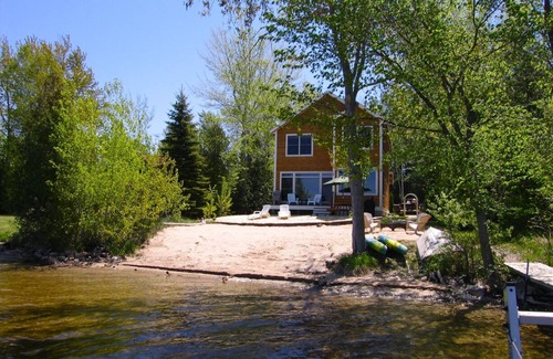 The Beach House on all-sports Upper Herring Lake offers 80 feet of private sandy beach frontage just 40 feet off the back deck! You may even catch a glimpse of the eagle that nests nearby.
