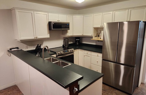 The condo features a fully equipped kitchen, but a night out in downtown Fernie is a 10 minute drive away, with tons of great restaurants and bars to choose from. The main bedroom features a new king-size bed and ensuite with bath and shower. The second bedroom features a bunk-bed, double on the bottom and single top bunk, with a trundle added below. The open plan kitchen, dining and living area is perfect for socializing and leads to the deck with BBQ at the rear of the property. The property is a great quiet place to hang out, unplug, and get outdoors.
