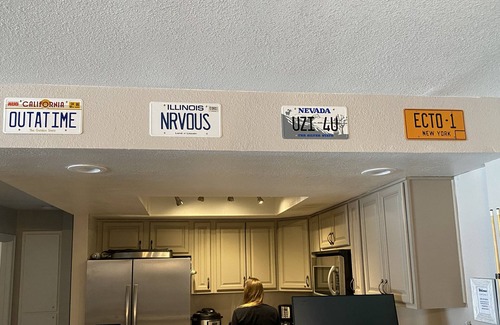 As you prepare your meals in our fully stocked kitchen, with an air fryer, crockpot, toaster, oven, and microwave - take turns playing the old-school Nintendo Entertainment System (NES) or "Back to the Future" monopoly with your friends and family. The "Office Space" working desk with a wall-attached monitor is also there if you need to get TPS reports or other work done during your stay.
