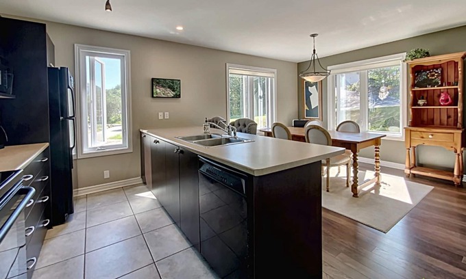 Situated at the base of the Ski Mountain, the comfortable bright condominium with lots of windows and an unobstructed view of the surrounding mountains is the convenient choice for a wonderful stay in the action of Mont Ste Marie. Walking distance to Alpine or Cross Country skiing, hiking trails, mountain biking, tennis or hanging out at the beach. Golf is a 5 min drive. Enjoy the outdoors to the fullest!!