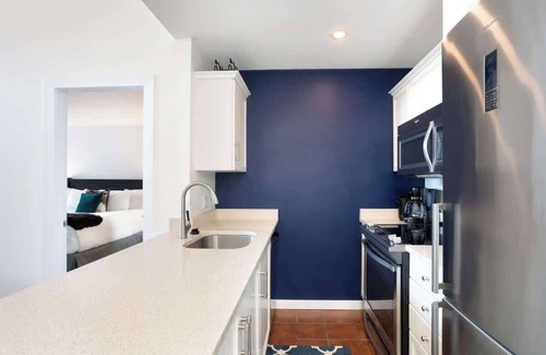 Guests have access to complimentary Wi-Fi, a dedicated workspace, a smart lock for self check-in, and a safe for personal belongings. The home is single level with elevator access, offering ease of movement throughout. Parking is available with one paid garage space or free street options nearby.