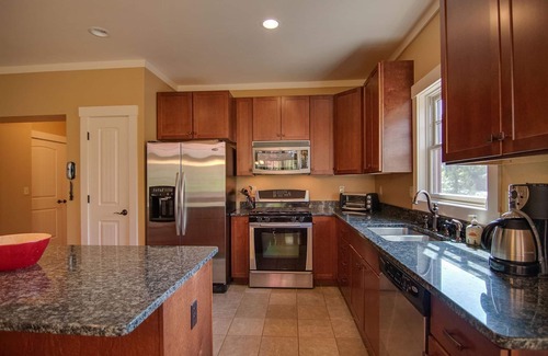 Gorgeously decorated, wonderfully located condo in the heart of the White Mountains! Ski home from Loon Mountain. Loon’s newest lift, Timbertown is located right across the street! You can walk to the lift and ski home! We also have an on demand private ski shuttle that will bring you to and home from any of the base camps. Just give them a call when you’re ready to go and the shuttle will bring you to whatever base you’d like! Hike out the front doors! Walk to town. Located in South Peak, Loon's premiere condo development with only 32 units in total, this condo offers everything you'll need for a winter/spring/summer/fall getaway including high-end finishes, tempurpedic mattresses, fire pit and hot tub (for use by condo association). After a long day of skiing, hiking or lounging by the river, you can relax in the large open kitchen/ dining/ living room with huge, custom sectional sofa, vaulted ceilings and gas fireplace. Kitchen is well stocked with spices, oil, popcorn etc and has coffee supplies for your stay including k-cups, creamers and sugar packets to get your mornings off on the right foot! There is also a drip coffee maker as well with filters and coffee grounds.