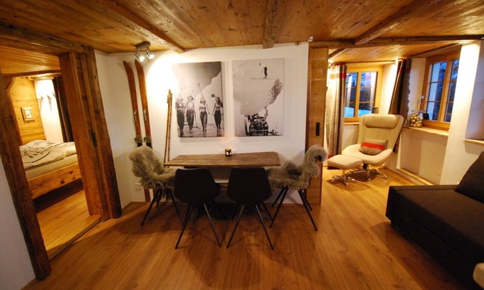 Nice renovated apartment near the middle station of the gondola from Lenk to Adelboden, great location, ski in ski out. One nice bed room, one living / eating room with a bunk bed with dividing wall. Small stainless steel kitchen with dishwasher, often, stove and fridge, own entrance. Access by car the whole winter (street cleaned) but we advice to bring snow chains or you can access the house via the cable car. Wood fire place...... nice and cosy place
