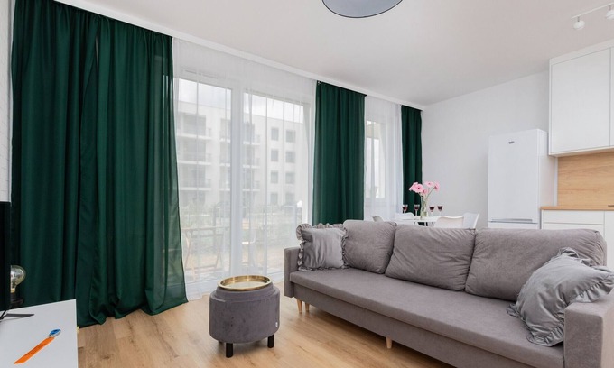The apartment is located in a modern building on Skiby Street in Gdansk. Its location in the Stogi district, only a 30-minute walk from the entrance to the beach, makes it a perfect choice for a family holiday by the sea. The quiet and peaceful surroundings of the apartment provide excellent rest and relaxation away from the hustle and bustle of the city, and encourage long walks. At the same time, there are supermarkets nearby - ABC (290 m) or Biedronka (500 m) - so guests can easily stock up on all their groceries. As well as access to Stogi Beach (2.7km), visitors can also visit the nearby Pusty Staw Lake (2.1km). Water fun for the whole family is also provided by the Stogi swimming pool, just an 8 minute walk from the apartment! Gda?sk Śródmieście (the city centre) is only 20 minutes away by bus - there you can find many excellent restaurants, cafes, visit interesting museums and historical sites. Visit famous places such as Długi Targ, St Mary's Gate and stroll along the Motława promenade, admiring the beauty of Gdañsk. It takes 15 minutes by car or taxi from the apartment to GdaDsk GdaDsk railway station and about 25 minutes to Lech Wałęsa airport.