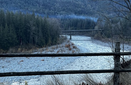 Rustic Ranch house located 35- 40 minutes from Stevens Pass Ski Resort. Overlooking the Skykomish River and nestled in a beautiful and serene location. Gorgeous Views and easy access. Less than a mile from Hiwy 2.