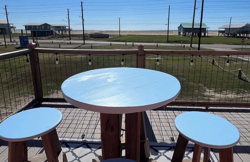 Come unwind on the front porch and watch the sunrise over the Gulf waters. This camp offers a spacious open floor plan with combined living, dining, and kitchen areas perfect for gathering the whole family. Conveniently located directly on Hwy 1, just across from the beach. Plenty of parking, including space for boats and lights under the house for added convenience. Nearest golf cart crossover: #4.8 Blackberry Lane.