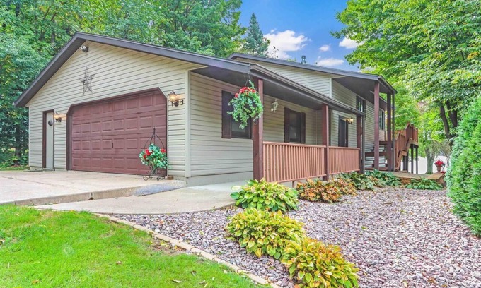 Gorgeous 3+ bed, 2 bath retreat nestled on fully recreational Eau Pleine - 15 min to Mosinee Airport & Marshfield Clinic. Kitchen w new appliances opens to dining/ family room w fireplace & walls of new windows. En suite bedroom w walkin closet & bath w shower. Laundry. Walkout family room w fireplace, wetbar & gameroom w pool/air hockey/ping pong. Big deck & grill, flat yard to water. Enjoy kayaking, fishing, boating, tubing & firepit. Pets welcome. New dock installed. As about Pontoon rental.