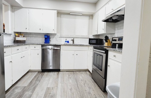 Welcome to Sky Blue on Eden! This charming townhouse features 3 bedrooms, 2 baths, 2 smart TVs with several streaming platforms such as netflix and more. Wifi is available, a fenced-in backyard, centrally located at your convenience for shopping, walking trails, and more! Kick back and relax for your next vacation and book with us!