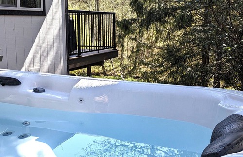 Cabin in the woods with modern amenities has great back yard with a creek & fire pit. Mountain views and private hot tub under the stars. Sky Creek Cabin is stocked with everything you'll need to feel right at home, with modern amenities such as high-speed internet and Netflix. Located at the base of the Cascade Mountains, year-round adventures include fantastic hikes, biking, skiing, rafting. Leavenworth (Bavarian Village) is only an hour away. Pets welcome; the front yard is fully fenced!