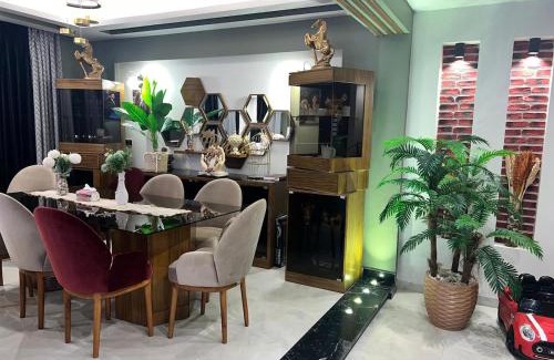 Offering a garden, Sky star 130 features accommodations in Hurghada. This property offers access to a balcony, free private parking, and free Wifi. The accommodation provides a 24-hour front desk, full-day security, and currency exchange for guests. Providing a terrace and pool views, the spacious villa includes 3 bedrooms, a living room, flat-screen TV, an equipped kitchen, and 3 bathrooms with a walk-in shower and a hot tub. Featuring air conditioning, this unit has a dressing room and a fireplace. The villa is allergy-free and soundproof. A mini-market is available at the villa. Sky star 130 also offers an outdoor swimming pool and a hot tub for guests to relax in. Sightseeing tours are available in the vicinity of the property. The villa has a picnic area where you can spend the day outdoors. New Marina is 13 miles from the accommodation, while Hurghada Grand Aquarium is 7.1 miles away. Hurghada International Airport is 7.5 miles from the property.
