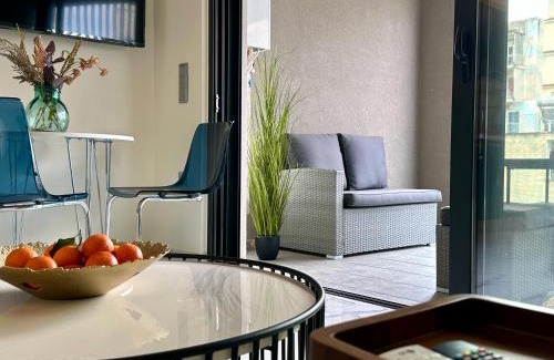 Food & DrinkBottle of water, Tea/Coffee makerBathroomShower, Towels, Body soap, Free toiletries, Private bathroom, Shampoo, Walk-in shower, Toilet paper, Toilet, HairdryerMedia & TechnologyFlat-screen TV, TV, Streaming service (like Netflix), Satellite channelsGeneralAir conditioning, Fire extinguisher, Smoke Alarm, Carbon monoxide detector, Tile/Marble floor, Soundproof, Trash cans, Ironing facilities, Iron, Mosquito netKitchenKitchenware, Kitchenette, Refrigerator, Kitchen, Washing machine, Coffee machine, Dining table, Microwave, Cleaning products, Stovetop, Oven, Electric kettle, Wine glassesOutdoorsPatio, Outdoor furniture, Outdoor dining area, Terrace, BalconyLiving AreaDining area, Sofa, Desk, Sitting areaBedroomWardrobe or closet, Childrens' cribs, Walk-in closet, LinensViewQuiet street view, View, City viewBuilding CharacteristicsPrivate apartment in buildingRoom AmenitiesHypoallergenic pillow, Drying rack for clothing, Socket near the bed, Clothes rackAccessibilityAccessible by elevator |