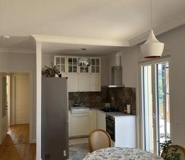 Food & DrinkTea/Coffee makerBathroomBathtub, Hairdryer, Slippers, Toilet, Free toiletries, Private bathroom, Bidet, Shampoo, Towels, Body soap, Shower, Toilet paperMedia & TechnologyFlat-screen TV, TVGeneralTile/Marble floor, Iron, Heating, Fan, Ironing facilities, Hardwood or parquet floors, Private entranceKitchenOven, Stovetop, Washing machine, Coffee machine, Cleaning products, Kitchenware, Refrigerator, Kitchenette, Wine glasses, Kitchen, Dining tableOutdoorsOutdoor furniture, Terrace, Outdoor dining area, BalconyLiving AreaSofa, Fireplace, Dining area, Sitting areaViewCity view, Mountain view, Quiet street view, ViewBedroomWardrobe or closetAccessibilityUpper floors accessible by stairs onlyBuilding CharacteristicsPrivate apartment in buildingRoom AmenitiesNon-feather pillow, Feather pillow, Clothes rack, Socket near the bed, Drying rack for clothing |
