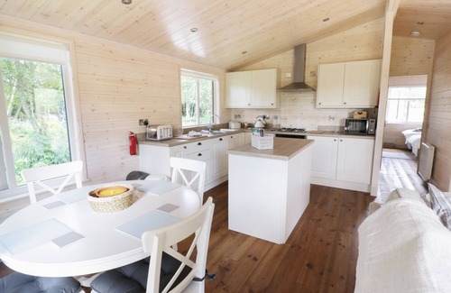 Skylark is a wooden log cabin set near Ross-on-Wye in Herefordshire. It has two king-size zip/link doubles (can be tuned into twins upon request) with en-suites and a family bathroom, it can sleep four people. It also comes with an open plan living area with a woodburning stove. Outside is off road parking for two cars and a decking area with furniture and hot tub. Skylark is a superb lodge in a secluded location. Please note: This property accepts Friday and Monday check-ins only.