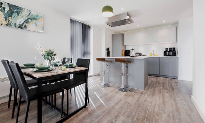 Welcome to your elevated apartment in the sky— a beautifully designed two-bedroom, two-bathroom apartment on the 13th floor of Birmingham’s prestigious Bank Building. Enjoy sweeping skyline views, premium amenities, and a location that places you in the very heart of Birmingham’s buzzing food, nightlife, and shopping scene. Sleeps 4 with plush bedding and high-end finishes throughout. Enjoy super-fast broadband, Netflix, and 2 smart TVs. Fully equipped kitchen with all amenities for a comfortable stay. Located in the heart of the city, just steps from top restaurants, nightlife, and major attractions. Building includes a residents' gym, stylish lounge, secure entry system.