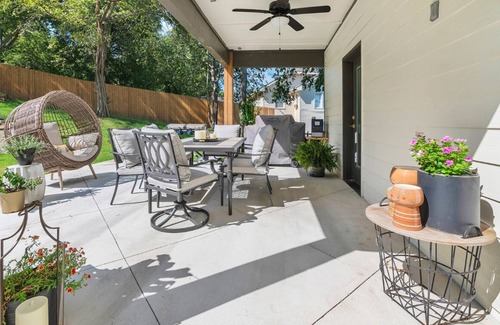 SkyView Retreat near Downtown Tulsa - a fantastic getaway! With its two balconies offering breathtaking views, beautifully furnished interiors, and an open kitchen and living area, the house is designed for comfort and style. The emphasis on quality beds and linens ensures a restful night, while the spacious work area with city views adds a nice touch for productivity. The outdoor dining space seems perfect for enjoying meals al fresco and creating lasting memories. Plus, the master suite with its own patio for sunrise and sunset views promises a serene escape. It's truly an ideal place to relax and unwind. Booking it sounds like a great idea for anyone visiting Tulsa!