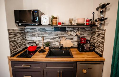 Skyway Borsec Connection Hideaway is an apartment that features guests a comfortable place to stay in Borsec with a garden and free Wifi. Spa facilities is available for guests. Outdoor seating is also available at the apartment. Featuring garden and quiet street views, this apartment offers 1 bedroom and opens to a patio. Offering a terrace with mountain views, this apartment also has a flat-screen TV, a well-equipped kitchenette with a microwave, a toaster, and a fridge, as well as 1 bathroom with a shower and bathrobes. There's also a seating area and a fireplace. Guests at Skyway Borsec Connection Hideaway will be able to enjoy activities in and around Borsec, like skiing, cycling, and hiking. Târgu Mureș Transylvania Airport is 89 miles away.