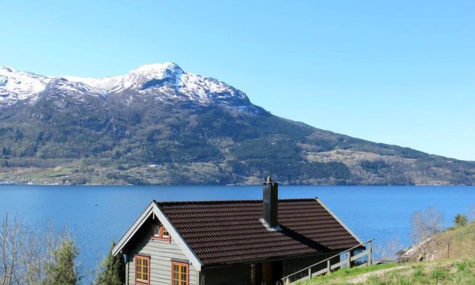 Cosy timber house "Slåttenes", built in 1995. In the hamlet Tjoflot 10 km from the centre of Djønno, 51 km from the centre of Voss, 75 km from the centre of Odda, in a secluded, sunny position, 25 m from the sea, 25 m from the fijord. Bathing place, fish-processing table. Private: natural state property with orchard. Rowing boat. Stepped path (10 steps) to the house. Parking at the house at 10 m. E-charging station. Shop 26 km, supermarket 30 km, ferry "Bergen" 152 km, swimming bay 100 m. Fishing possibilities 25 m. Hiking paths: Oksen. Table for fish gutting and smoking oven available (shared use).