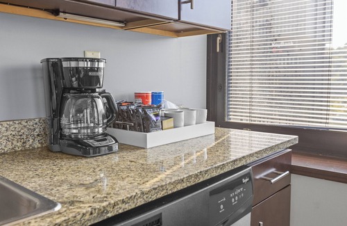 While you're here, you can enjoy all the comforts of home and more, including a full-sized refrigerator/freezer and an oven, as well as a stovetop and a dishwasher. Other amenities include towels, an electric kettle, kitchenware and utensils, and an ironing board.