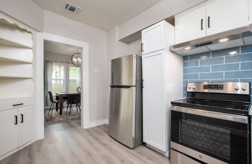 Experience the relaxing ambiance of the charming 2BR 2Bath house situated in the friendly neighborhood of Dignowity Hill, less than 5 mins from downtown San Antonio. Its prime location offers easy access to top restaurants, shops, entertainment, and attractions, such as The Alamo, The Pearl, Hemisphere Park, and the River Center Mall.