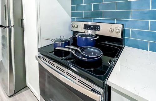It is fully equipped with modern cooking appliances that make it suitable for preparing any meal, whether a simple breakfast, quick snack, or a three-course gourmet dinner. Spacious countertops provide plenty of room to work your MasterChef magic.