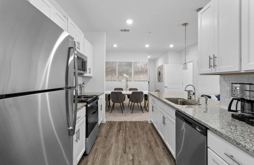 This friendly home features a spacious living are with modern, clean decor and natural light. You'll love the open floor plan, making it easy to entertain your group while making delicious appetizers.