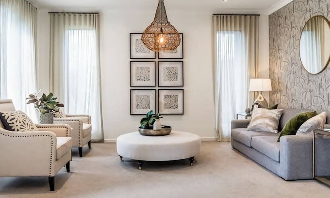 In the first level of this home, you'll walk to a thoughtfully designed open-plan family room, dining room, and designer kitchen flowing seamlessly from one another. With sleek white tiles and complementary decor, this home offers elegance and simplicity, bundled up in a chic package.