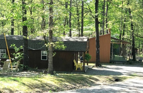 A whimsical cabin on a wooded lot, 5 minutes from Lake Ouachita. Nearby are crystal mines, bike trails, boat and kayak rentals, and just a 30 minute drive to Historic Hot Springs. Enjoy the fire pit and large yard, to spot deer families and other wildlife.