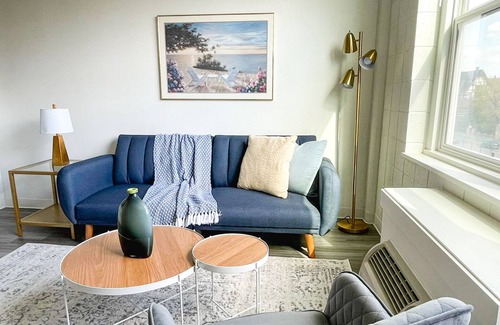 This refined and contemporary 1 bedroom apartment is fully furnished with all the best amenities, toiletries and complementary goods to make your accommodation an unforgettable experience. The unit includes a full living room area, kitchen, bedroom, and bathroom. The living room has a futon for additional sleeping accommodations