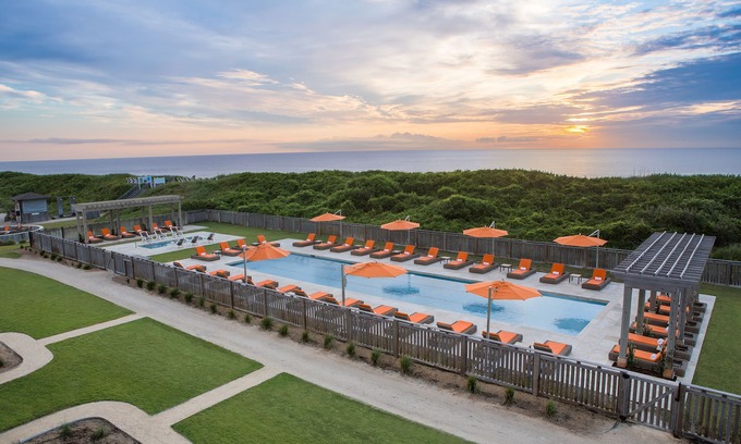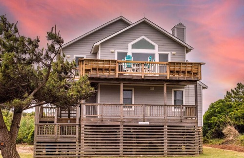 Indulge in luxury at our beautiful 4-bedroom house, accommodating up to 10 guests. Breathtaking sunset views from your private oceanside balconies and direct beach access without crossing busy streets. Bring your furry friends along, as we're dog-friendly! Enjoy top resort amenities and porches overlooking the Currituck Sound. Your dream vacation awaits!