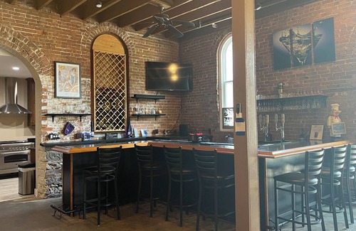 Awesome hangout with bar area with unique house built into natural rock wall with natural running water sometimes depending on weather. Hangout in the bar/ family room or on the deck on the second floor, or maybe take a walk to Montour falls and get a Iced coffee and then watch the falls for a while its just a 4 minute walk down the street. Watkins Glen Race track is 5 minute drive. Down town Watkins Glen or Seneca Lake its only a couple minutes away.