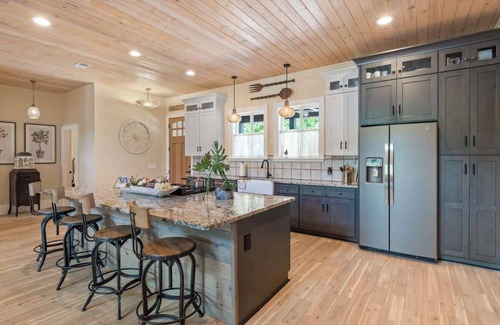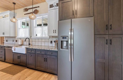 After a full day of fun, head on up to the open concept living room with 30 ft vaulted ceilings and send the kids up the spiral staircase to the 500 square foot loft. Up in the playroom, they have over fifty family friendly DVDs to watch or can game, play or “just dance” with the Xbox Kinect set up for them. For your younger children , we have a toy kitchen set up with all the accessories in the sunroom on the main level.