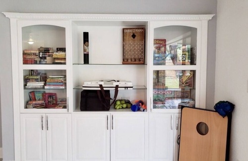 Beautiful open concept home (upstairs not open to guests) perfect for large groups, families and dogs all available on one floor ! There’s something for everyone to do. 85 inch smart TV in the living room, gazebo hot tub and fire pit in backyard and game room in the garage! Outdoor seating in screened-in patio for 16+ people. TVs in every room. Short drive to Indian Rocks Beach and Clearwater Beach!