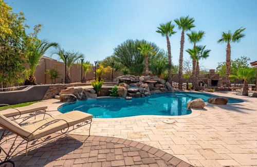 Sleeps 25 Heated Pool and Spa Pickleball Court is located in Rio Verde Foothills. Sleeps 25 Heated Pool and Spa Pickleball Court provides accommodation, featuring Sports/Activities, Fireplace/Heating, Entertainment, among other amenities. This Apartment features Sports/Activities, Fireplace/Heating, Entertainment, to make your stay a comfortable one.