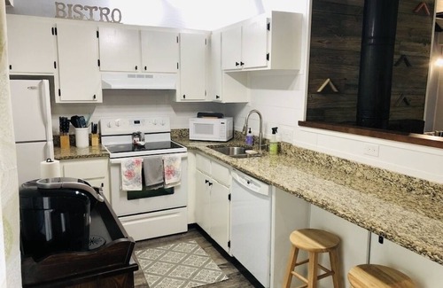 Condo has new vinyl plank flooring throughout and new carpet in the bedrooms. Bathrooms have been updated with vessel sinks. It offers 2 decks (shared with partition) for viewing the slopes and the wildlife in the area (lots of deer). 32” Roku TV in guest bedroom and 43” in the master bedroom. New 55” Roku tv in the living room. Granite counter tops in the kitchen with an under mount sink. New pots and pans for cooking, kids sized plastic ware and unbreakable cups, Bella interchangeable sandwich maker/griddle/waffle maker, Keurig coffee maker, 5 cup drip coffee maker, toaster, microwave, and small crockpot. I tried to make it as family friendly as possible! Each bedroom has a queen sized bed and the sleeper sofa is also a queen.