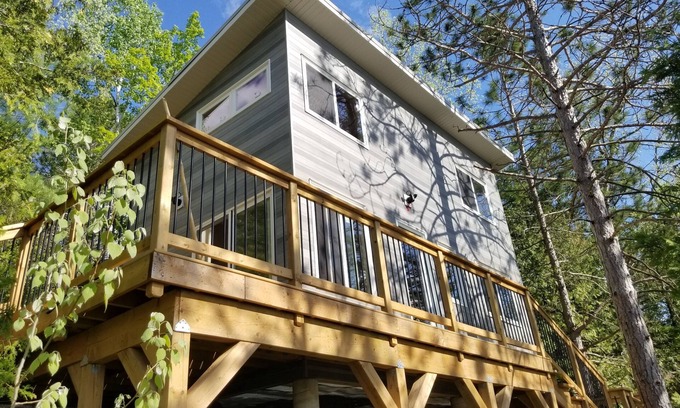 2024 built cozy cottage perched on a waterfront cliff on a small lake 2 hours north of Toronto.