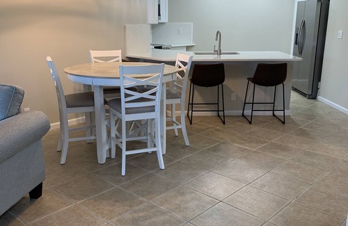 Updated first floor condo. kitchen with all new stainless steel appliances and quartz countertops. Fully stocked with all the cooking essentials and coffee maker.