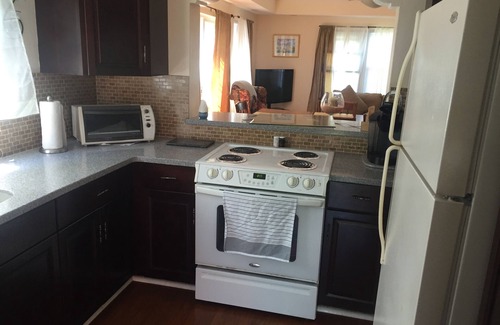 We are centrally located in Warwick and very close to restaurants, convenient/groceries stores, transportation routes and beaches. Our semi attached modern two bed/one bath apt is airy and bright with wooden floors throughout. Dining/living room combined with a bar height counter top giving view onto the kitchen. Our apartment has a separate entrance and its own dedicated parking space (the main house is attached but currently not occupied with on and off home renovations). Within the apartment there are ample closets, heating and air conditioning, 42" flat screen TV with cable. We have free WiFi and a telephone for local calls. The first bedroom has a queen size bed and a dresser for longer stays and the 2nd bedroom has two single beds. We do have a single size roll-away bed that can be used for the 5th person that can be set up in the 2nd bedroom to make 3 single beds and most ideal for a family with 3 children. The kitchen is fully equipped with dishes, glasses, cooking essentials plus a toaster, kettle, coffee maker, microwave oven, electric stove and fridge with a freezer.