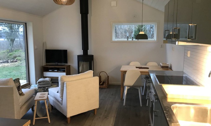 The house was renovated and added in 2019. It is quietly located on Fiskestadsjön, about 10 km north of Tingsryd. The house has a bedroom with access to a covered terrace, a bathroom with shower and a kitchen with a large window and access to the terrace with a view of the lake a few meters away. There is underfloor heating throughout the house. The price includes an aluminum rowing boat (make Linder 440), which is attached to the house.
